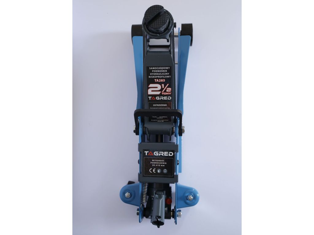 Гидравлический домкрат TAGRED TA285 с грузоподъемностью 2,5 тонны и высотой подхвата 85 мм (без резиновой накладки) позволяет обслуживать подавляющее большинство легковых автомобилей, в том числе авто с низким клиренсом. Прочная, жесткая конструкция из прокатных стальных листов, соединенных в специальные профили, гарантирует надежность и безотказность устройства. Гидравлический цилиндр обеспечивает плавные и контролируемые подъем-опускание.