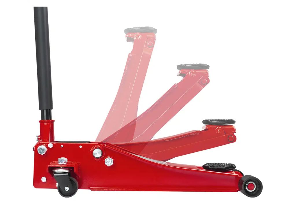 Благодаря двойному насосу подъем и опускание выполняются очень быстро. Встроенный предохранительный клапан защищает домкрат от перегрузки. Поворотное на 360° седло, металлические поворотные ролики и удобная ручка длиной 100 см позволяют легко позиционировать подъемник под автомобилем. Конструкция выполнена из прочной стали и обладает высокой надежностью и износостойкостью. Благодаря своей универсальности этот низкопрофильный домкрат станет выгодным приобретением для работы с автомобилями.