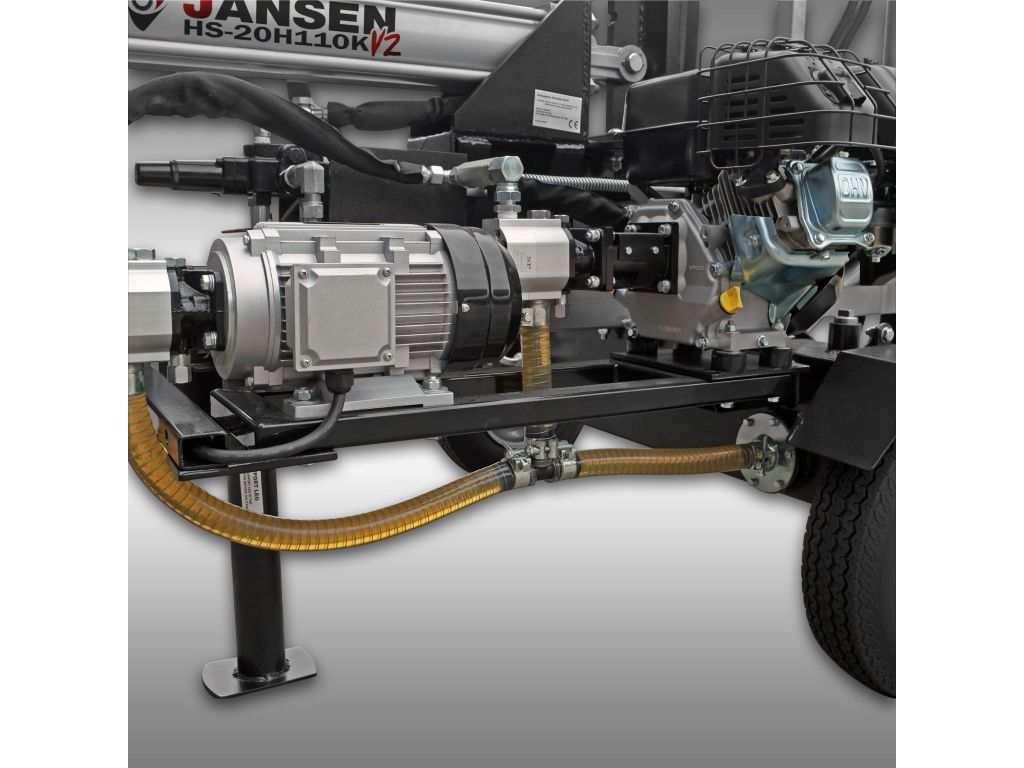 Одной из выдающихся особенностей Jansen HS-20H110K-V2 есть возможность выбора из двух разных типов приводов. Мощный бензиновый двигатель KOHLER позволяет использовать дровокол в отдаленных районах без доступа к электроэнергии, в то время как 400-вольтный электродвигатель мощностью 2,2 кВт предлагает экологически чистый, тихий вариант для использования в жилых районах. Эта гибкость делает Jansen HS-20H110K-V2 очень универсальным.