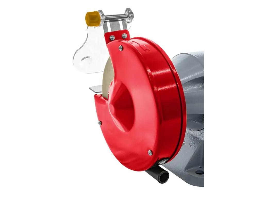 Литой чугунный корпус выполнен в промышленном дизайне, минимизирует вибрации и поддерживает стабильность рабочего процесса. Защитный экран из плексигласа с функцией лупы защищает оператора от искр и выброса стружки, обеспечивая оптимальную видимость рабочей зоны. Для удобства фиксации заготовок есть регулируемые опорные подставки. Этот двухдисковый шлифовальный станок будет эффективным как в собственном гараже, так и в небольшой мастерской.
