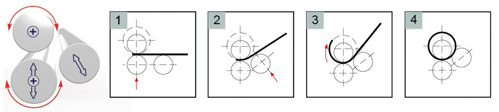 - Нижний и боковые вальцы регулируются по высоте (вручную)