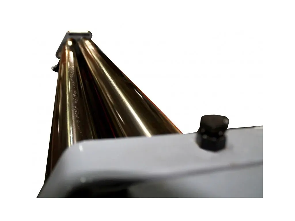 Нижний и задний валки независимо регулируются с обеих сторон с помощью маховиков, что дает точную настройку радиуса и возможность компенсации перекоса. Откидной верхний вал позволяет легко снять готовую деталь. Электродвигатель с редуктором обеспечивают плавную, стабильную гибку, а ножная педаль управления делает эти электромеханические вальцы более удобными в эксплуатации.