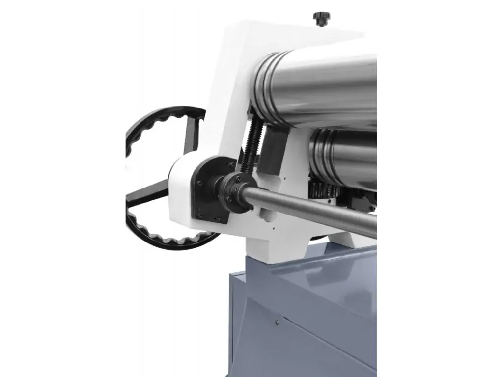 Верхний ролик откидной, что позволяет легко снимать готовую продукцию. За счет маховиков производится перемещение заднего и нижнего валков. Причем валы перемещаются параллельно верхнему, что минимизирует перекосы и позволяет прокатывать ровные цилиндрические изделия.