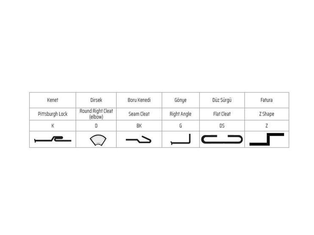 Кромкозагибочная машина с 7 рабочими участками EKM 11 предназначена для получения замков на листе таких как: питсбургский замок, соединительная рейка, силовой фланец, круглая прямая рейка, Z – образная рейка, прямой угол, стыковая рейка, плоская стыковая планка, плоская планка.