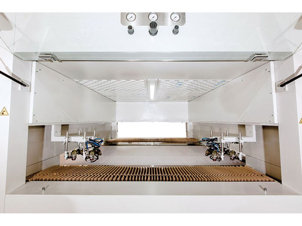 В машине для покраски мебели KR BM-1700 пыль с продукта удаляется щеткой и воздушными форсунками. Статическое электричество, образовавшееся на изделии в результате трения, нейтрализуется антистатическим стержнем. Интеллектуальная система воздушной струи, которая определяет, что продукт доставлен, начинает дуть и останавливается, когда продукт проходит, экономя при этом энергию. Автоматическая регулировка высоты облегчает работу пользователя.
