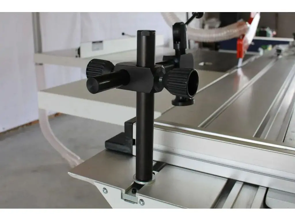 ТЕЛЕСКОПИЧЕСКАЯ УПОРНАЯ ЛИНЕЙКА Поперечная линейка изготовлена из алюминиевого профиля большого сечения. Обладает высокой повышенной жесткостью и стойкостью к износу. Расширительный стол большого формата имеет западной ролик для удобства загрузки и выгрузки листов материала без повреждения поверхности. |