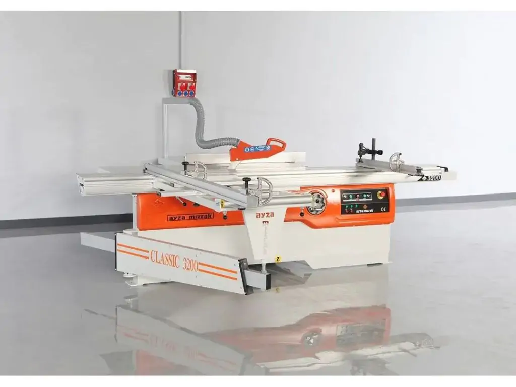 Форматно-раскроечный станок Ayza Mizrak 3200 CLASSIC предназначен для продольной, поперечного и углового раскроя плитных материалов (МДФ, ДВП, ДСП и клееных щитов) облицовочных и ламинированных, с предварительным подрезом нижней кромки для предупреждения сколов и распила массива древесины с большой высотой пропила.