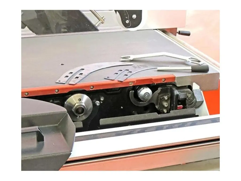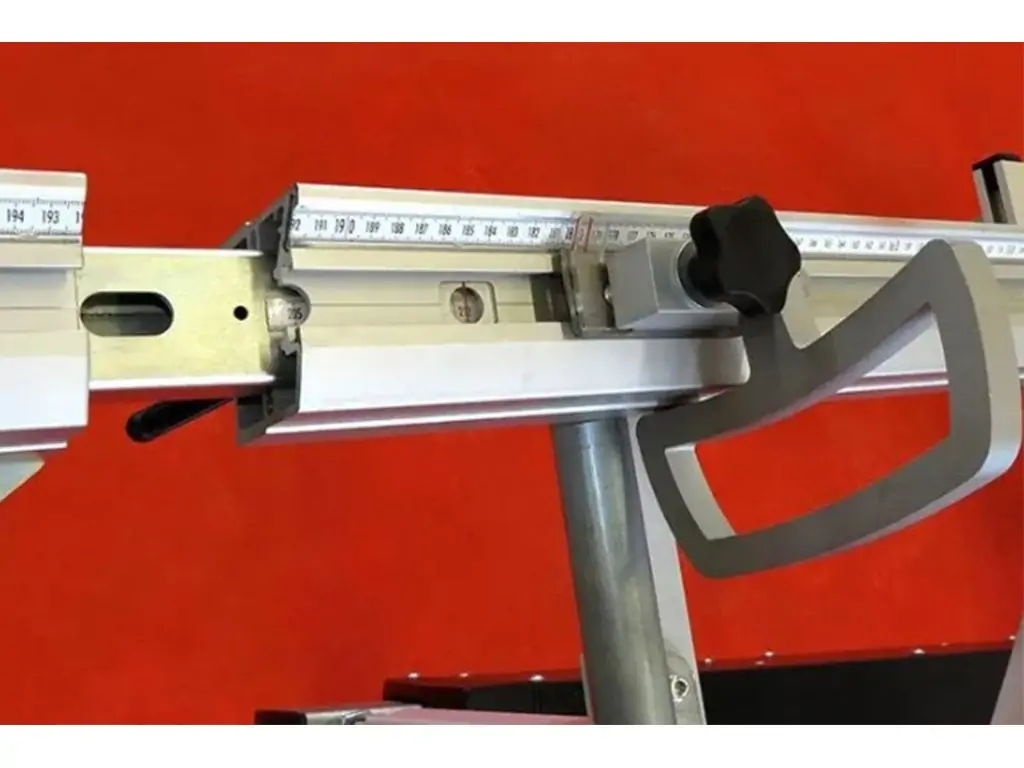- Выдвижная фронтальная поперечная линейка позволяет удобно работать с габаритными заготовками