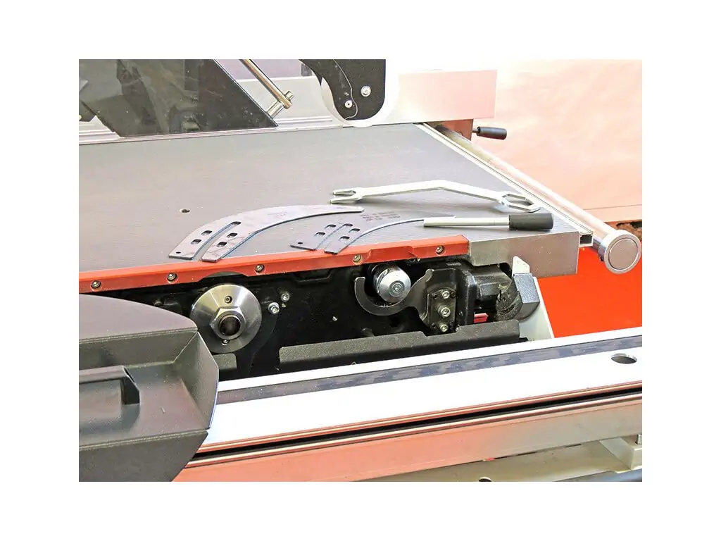 - Инновационная система наклона пильного узла с помощью фрезерных направляющих обеспечивает плавность хода и высокую точность и не требует обслуживания