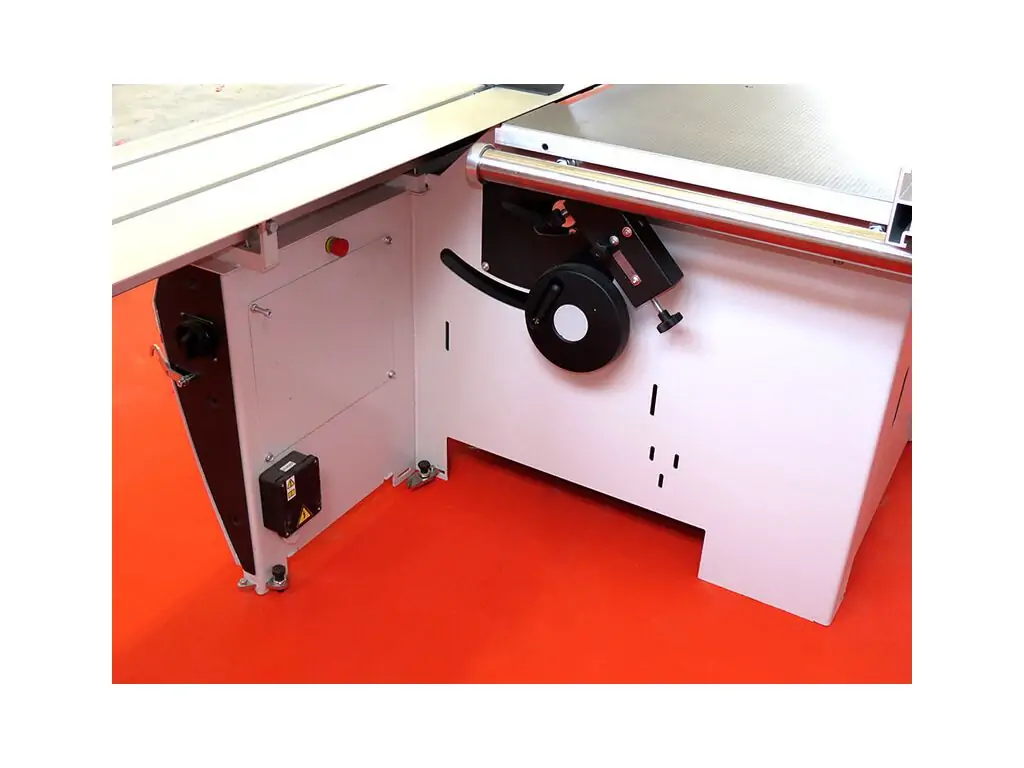 Массивная сварная станина с дополнительными усилителями, мощность двигателя основной пилы 5,5 кВт, подрезной узел с независимым двигателем 1,3 кВт, жесткие направляющие и упоры, а также возможность точной регулировки реза обеспечивают высокопроизводительную работу даже при интенсивных нагрузках и точное, качественное выполнение задач разной сложности.