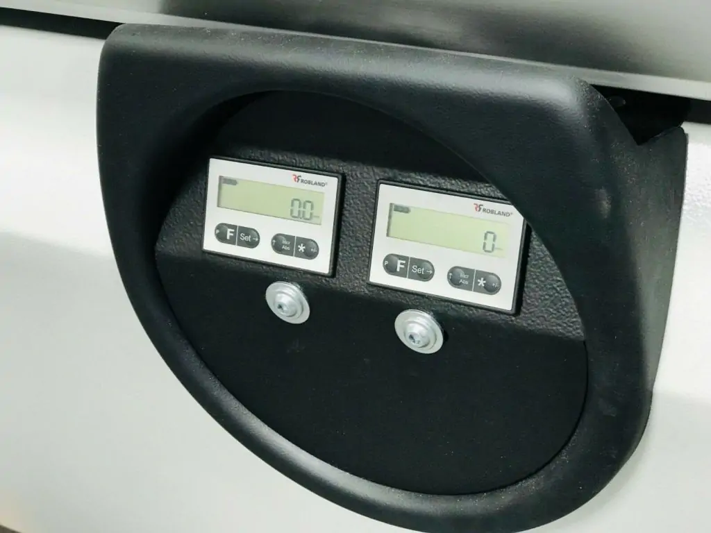 - Два цифровых индикатора размера на левой поперечной линейке (в комплекте двойной откидной упор DDF и одинарный на телескопической линейке)