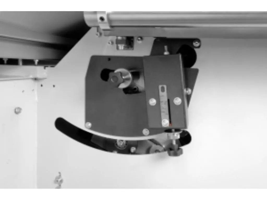 - Защитный кожух верхнего пильного диска на поворотном кронштейне и с патрубком для подключения аспирации