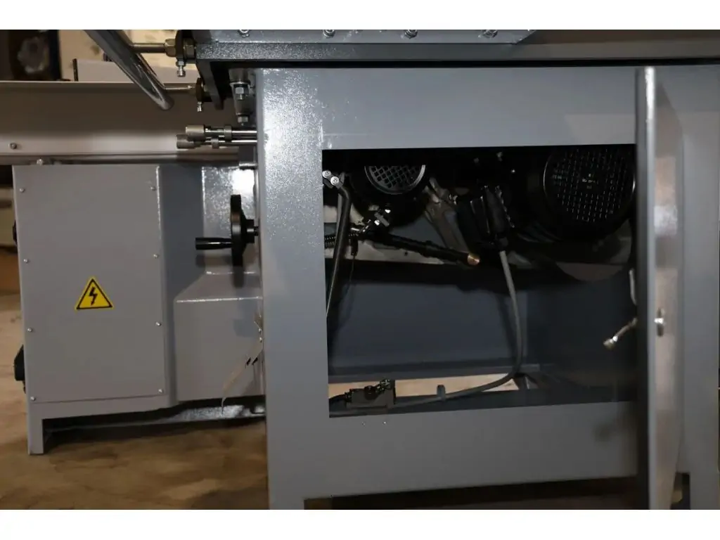 Массивная станина, чугунный рабочий стол с удлинением и расширением и выдвижной алюминиевый стол позволяют качественно работать с большими, тяжелыми заготовками. Пильный диск регулируется по углу и высоте и имеет 2 скорости вращения, что позволяет максимально точно выполнять поставленные задачи. Пульт управления находится с передней стороны станка, что удобно для оператора.