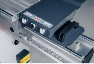 Максимальный диаметр пильного диска составляет 350 мм. Наклон пильного диска от 0° до 45° позволяет точно выполнять угловые пропилы. Максимальная высота пропила (0°/45°) - 110/70 мм. Алюминиевая каретка имеет размер 3200х400 мм и перемещается на 2 стальных роликах по круглым направляющим диаметром 16 мм. Этот форматно-раскроечный станок с подрезным узлом обеспечивает длину пропила до 3100 мм и высокую производительность работы, что делает его идеальным выбором для серийного производства.