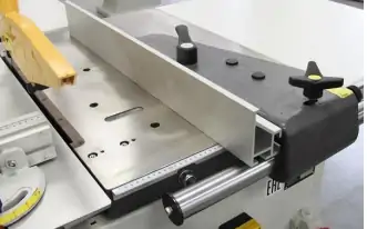 Микрометрическая регулировка параллельного упора – это специальный механизм настройки положения упора (линейки), который позволяет выставлять размер раскроя с высокой точностью, обычно до десятых или даже сотых миллиметра. Преимуществами микрометрической регулировки упора являются высокая точность резки, удобство и скорость настроек, что особенно важно в серийном производстве.