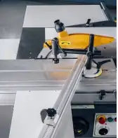 Телескопическая линейка позволяет быстро выставлять точные размеры раскроя, а откидные упоры - повторять одинаковые детали без дополнительных измерений, что значительно повышает производительность.