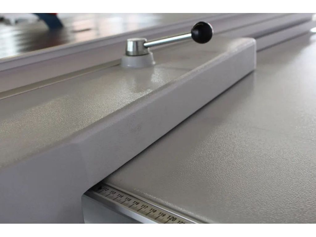 ТЕЛЕСКОПИЧЕСКАЯ УПОРНАЯ ЛИНЕЙКА Поперечная линейка изготовлена из алюминиевого профиля большого сечения. Обладает высокой повышенной жесткостью и стойкостью к износу. Расширительный стол большого формата имеет западной ролик для удобства загрузки и выгрузки листов материала без повреждения поверхности. |