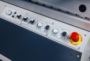 ПУЛЬТ УПРАВЛЕНИЯ Пульт управления, который легко читается, расположен под углом для удобства работы оператора. На пульте расположены кнопки запуска/остановки приводов пил, рычаги электрорегулировки наклона и вылета, а также индикатор текущей скорости вращения основного вала и кнопка аварийной остановки станка. |