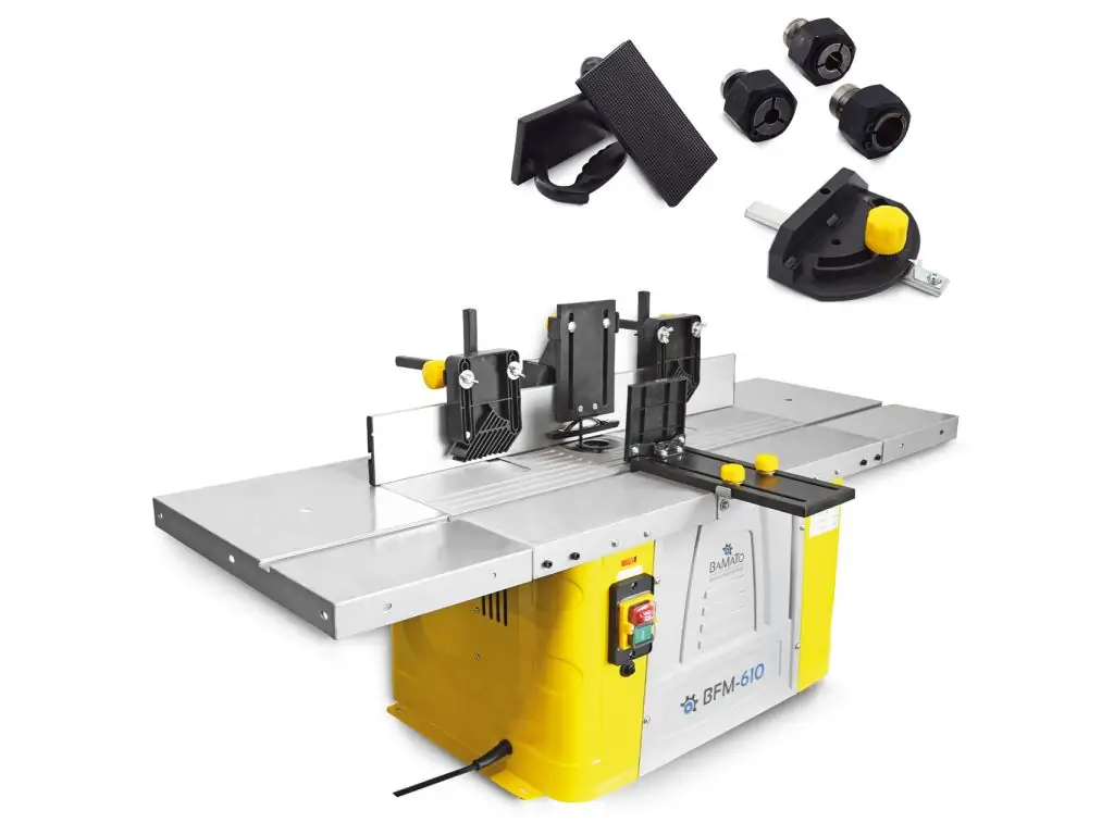 Фрезерный станок BAMATO BFM-610 с переменным регулированием скорости является идеальным устройством для фрезерования профилей и пазов. Благодаря регулируемой высоте шпинделя фрезу можно быстро установить на нужную высоту.
