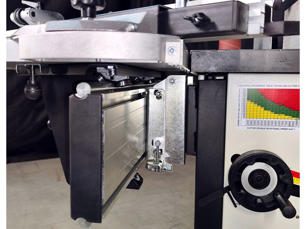 Станина, изготовленная из листового металла и усиленная опорными ножками из стали, гасит вибрации и обеспечивает стабильность рабочего процесса. Чугунный стол с полированной поверхностью 640х710 мм устойчив к нагрузкам и позволяет удобно работать с заготовками различной формы. Опционально доступно расширение стола с шипорезной кареткой, что дает еще больше возможностей использования станка.