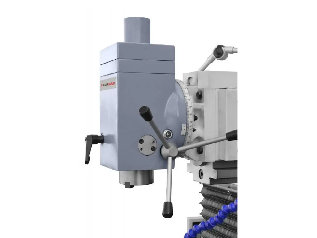 Инструментально-фрезерный станок с ЧПУ CORMAK оснащен вертикальной поворотной фрезерной головкой в диапазоне +/- 60 ° и горизонтальной фрезерной системой.