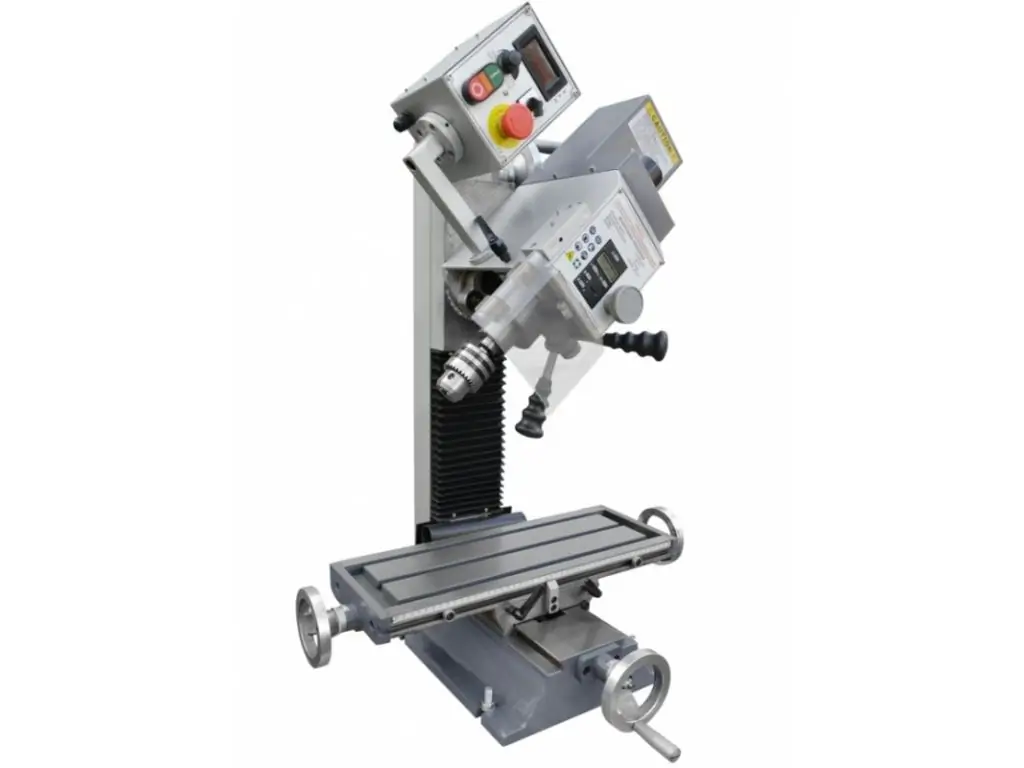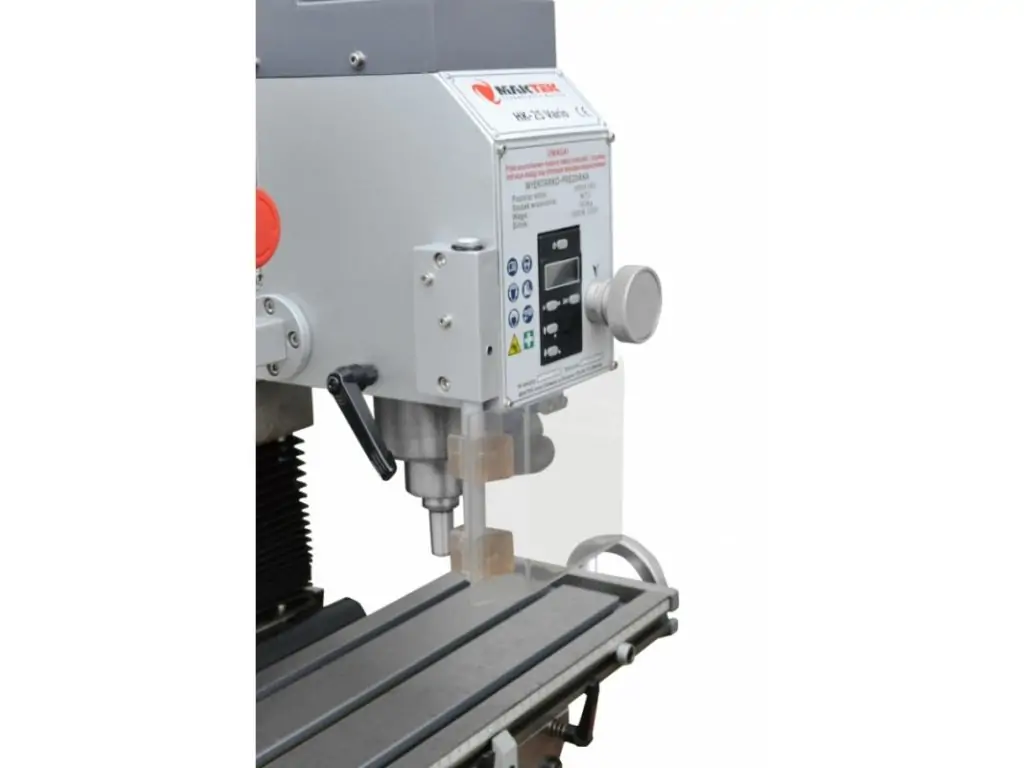 • поворотная вертикальная фрезерная головка и пиноль с ручным приводом