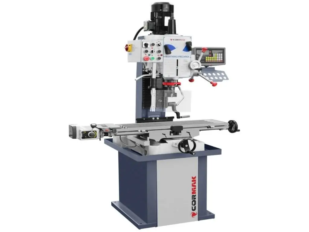 • поворотная вертикальная фрезерная головка и пиноль с ручным приводом;