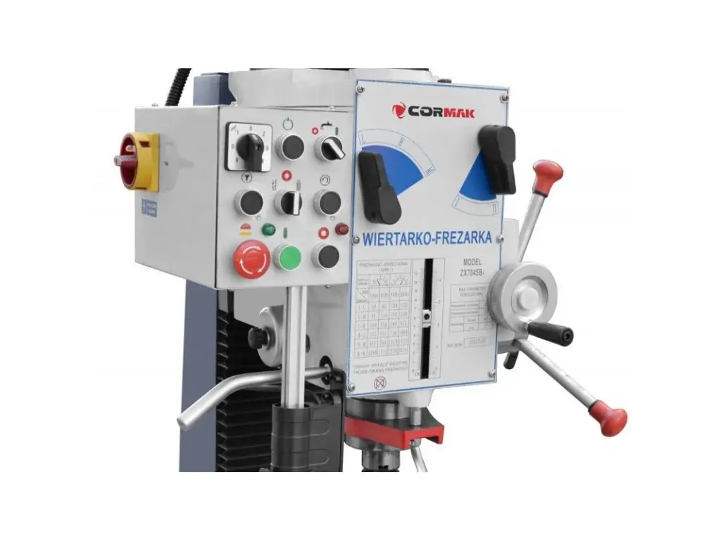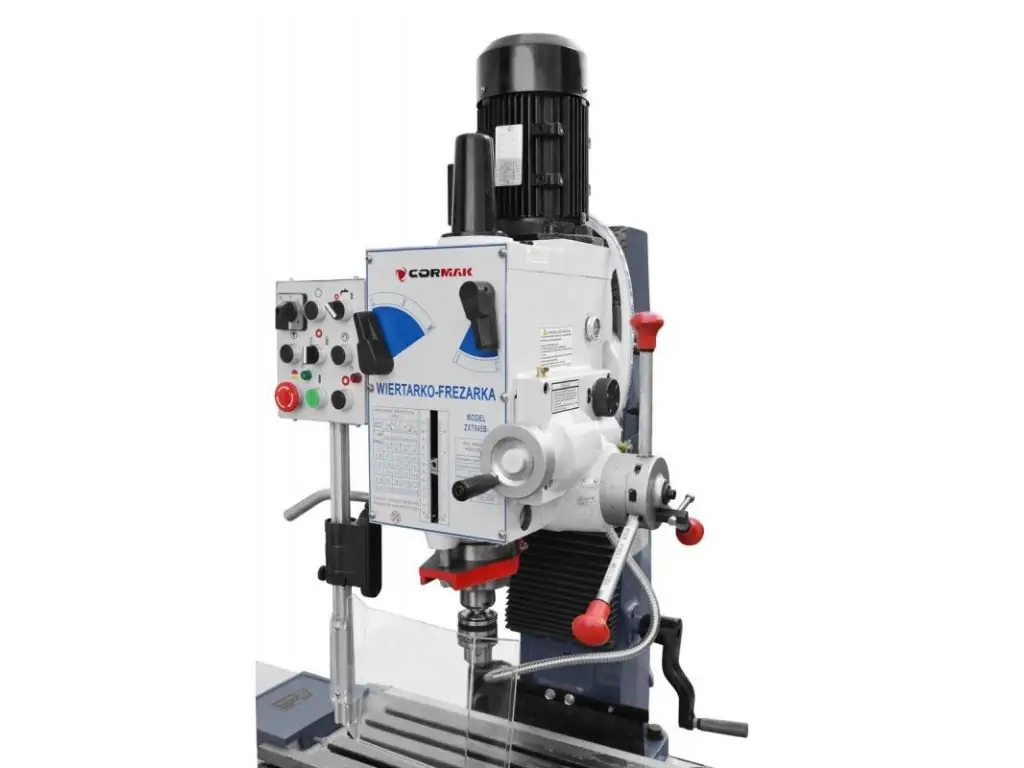Фрезерно-сверлильный станок Cormak ZX 7045 B1 может использоваться для сверления, развертывания и расширения отверстий до 45/40 мм в чугуне и нарезания резьбы болтами до М12 мм, фрезерования до ширины 80 мм и фальца до 22 мм. Он также подходит для резки и торцевого фрезерования. Стандартная версия ZX 7045 B1 оснащена шпинделем с автоматической подачей и системой охлаждения. Машина сразу доступна на складе.