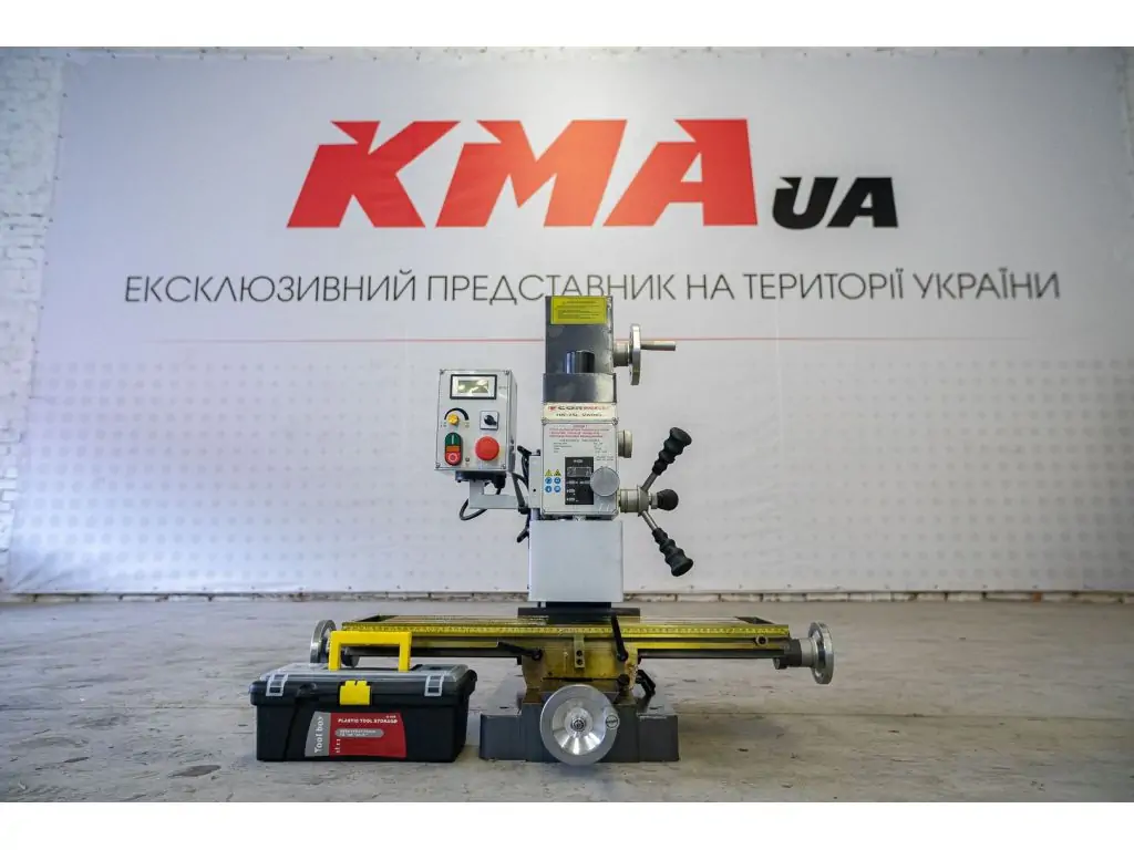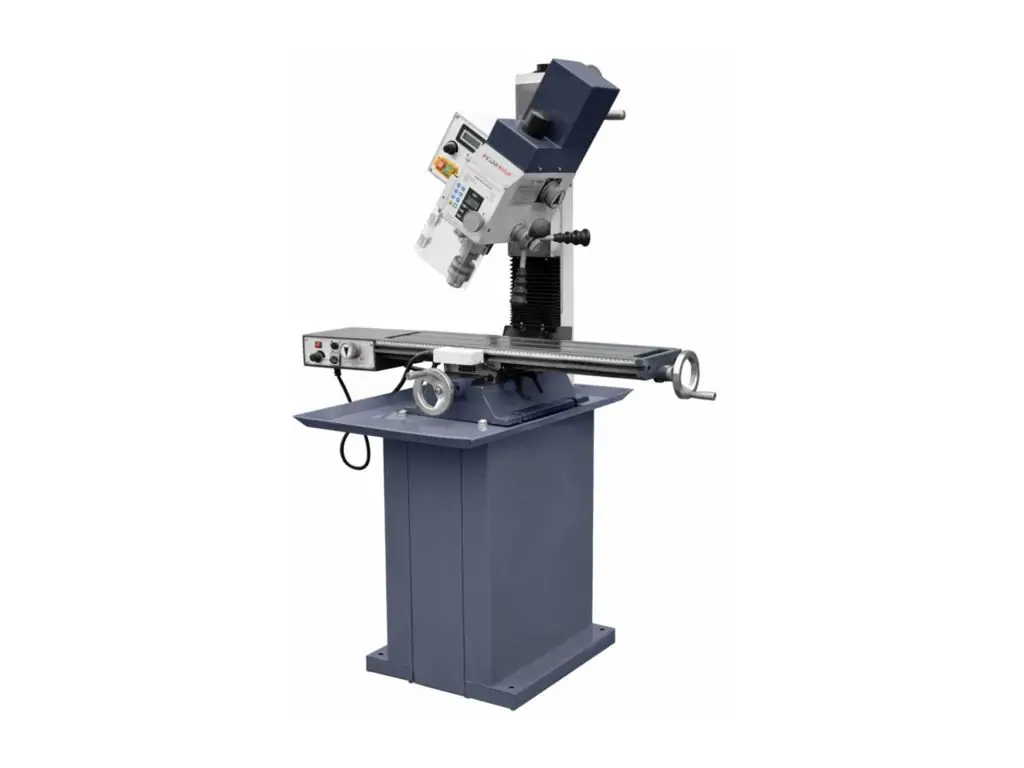 Компактный фрезерно-сверлильный станок универсального применения. Поворотная головка, конус шпинделя MK3. Цифровой дисплей показывает скорость шпинделя.
