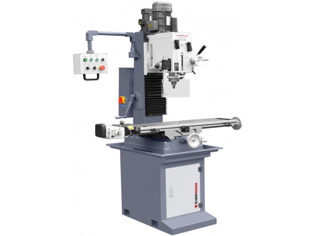 Фрезерно-сверлильный станок CORMAK ZX 7055 DRO качественно выполняет фрезерование плоскостей и торцов, выборку пазов, сверление, растачивание, развертывание и нарезание резьбы. Подходит для обработки всех видов металла. Максимальный диаметр концевой фрезы – 32 мм, торцевой фрезы – 80 мм.