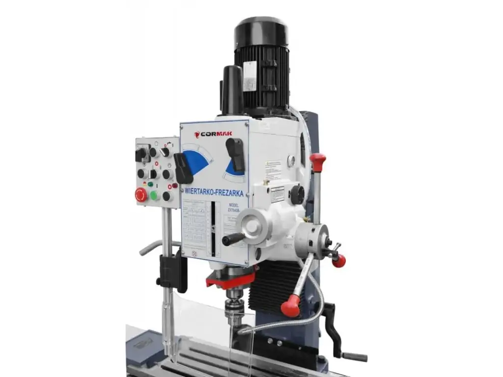 Фрезерно-сверлильный станок CORMAK ZX 7045 B1 предназначен для выполнения таких операций, как сверление и растачивание отверстий диаметром до 45/40 мм в чугуне, нарезание резьбы до M12, фрезерование до 80 мм, а также создание пазов шириной до 22 мм. Он отлично подходит для работ, связанных с отрезанием и фронтальным фрезерованием. В базовой комплектации ZX 7045 B1 имеет автоматическую подачу шпинделя и систему охлаждения. Подставка доступна как опция.