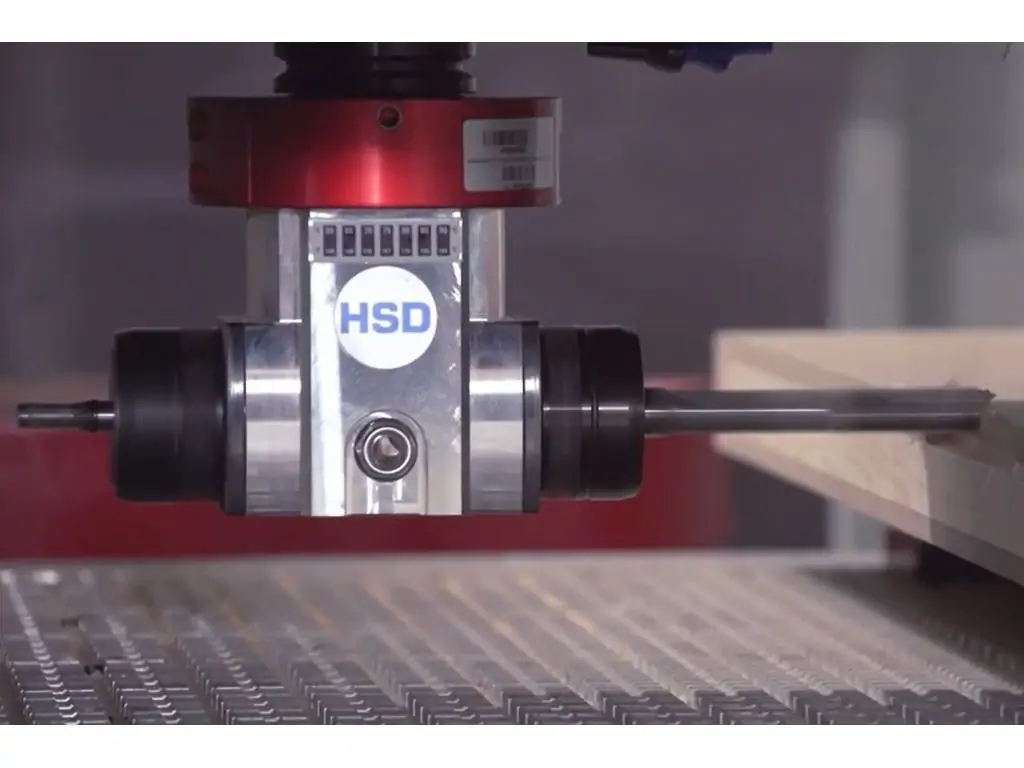 Обработка замка, петли и отверстий двери на одном станке возможна с помощью дополнительного бокового фрезерного двигателя мощностью 5,5 кВт с двойной мощностью. Завершите все операции с дверью за 2 минуты 30 секунд!