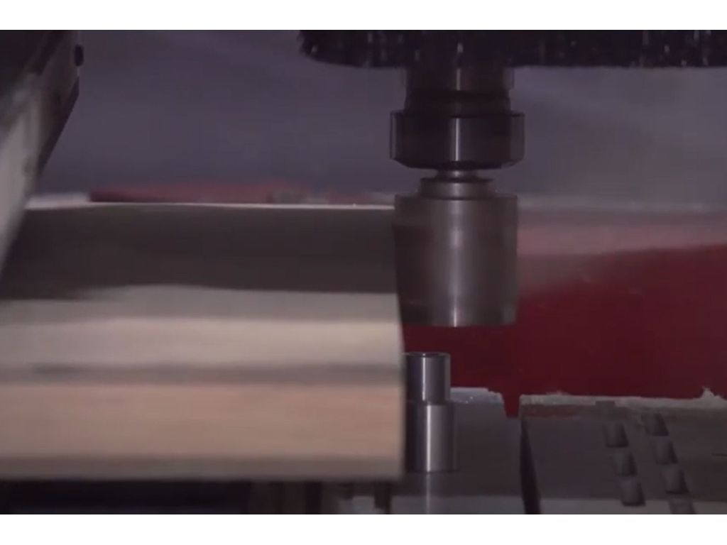 Обработка замка, петли и отверстий двери на одном станке возможна с помощью дополнительного бокового фрезерного двигателя мощностью 5,5 кВт с двойной мощностью. Завершите все операции с дверью за 2 минуты 30 секунд!