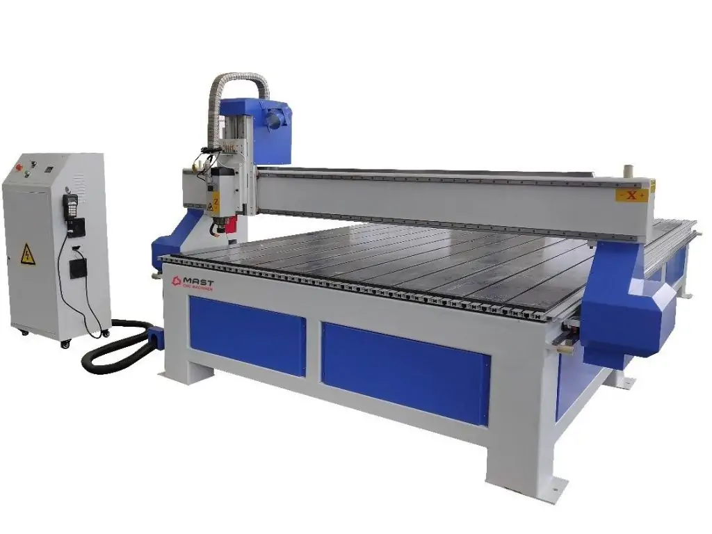 Рабочий стол станка является синтезом вакуумного стола и алюминиевого стола из «Т» – пазами. Такая конструкция дает максимальную гибкость и наиболее широкие возможности при выборе способа фиксации заготовки. Вакуумный стол разбит на четыре зоны для удобства фиксации деталей разных габаритов. Все модели станков с возможностью вакуумной крепи заготовок имеют специальную конструкцию стола, который позволяет крепить заготовку как с помощью вакуума, так и с помощью механических зажимов. Это позволяет отключить вакуумный насос и экономить электроэнергию в случае обработки частого изменения ненуждающихся заготовок или обгонки по периметру заготовки. Вакуумный стол производится из цельного листового материала, в котором фрезеруются пазы под алюминиевый профиль для крепления механических зажимов (струбцин). В этой конструкции отсутствуют какие-либо переклейки, что гарантирует стабильность работы вакуумного стола в течение всего срока службы оборудования.