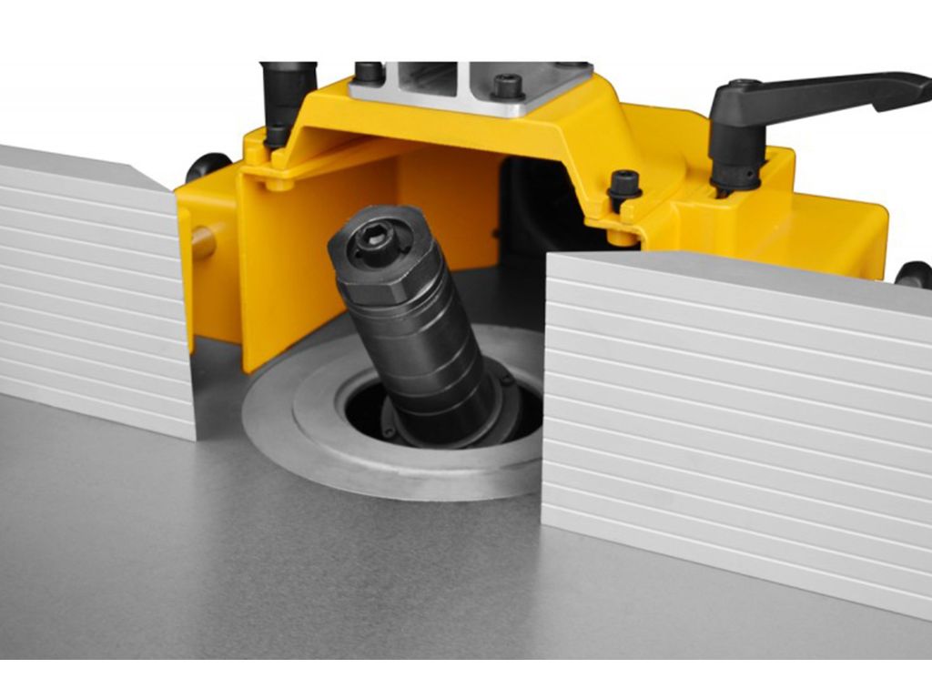 Выдвижной шпиндель 30 мм, в верхней части корпуса находится механизм поддерживающий обрабатываемый материал. Станок идеален, как для профессионалов так и столяров аматоров.