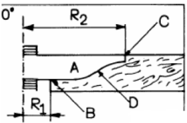 НАКЛОН ШПИНДЕЛЯ 0-45° Улучшает качество обработки поверхности при разной глубине профиля на одной заготовке. Работа без наклона: На рис.2 скорость в точке существенно больше скорости в точке В, т.к. R2 значительно больше R1. Поэтому качество обработки поверхности D в точках В и С будет отличаться, а также может привести к перегреву поверхности заготовки и инструмента.