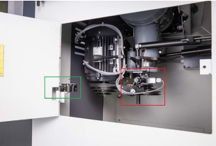 СИСТЕМА БЕЗОПАСНОСТИ Соответствует европейским нормам. При открытой крышке отсека срабатывает конечный выключатель и блокирует возможность включения станка (выделено зеленым). При смене инструмента шпиндель стопорится специальным штоком, одновременно срабатывает концевик (выделено красным). Это блокирует включение станка с застопоренным шпинделем и позволяет избежать дорогостоящего ремонта. |