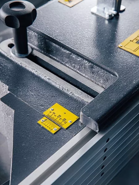 НАСТРОЙКА КОЖУХА Настройка направляющих линеек по миллиметровым шкалам с помощью удобных регулировочных винтов. |