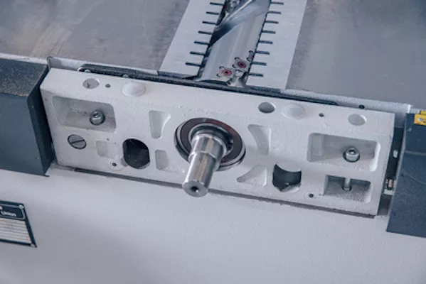 КРЕПЛЕНИЕ НОЖЕВОГО ВАЛА Находится в чугунном литом корпусе, в котором все отверстия посадки автоматически обрабатываются на фрезерном центре с ЧПУ за один установ. Этим обеспечивается отсутствие малейших вибраций и достигаются отличные результаты фугования.  |