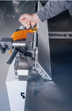 ЧУГУННАЯ НАПРАВЛЯЮЩАЯ ЛИНЕЙКА Длина 1500 мм. Легко перемещается на износостойких роликах, не повреждая стол. Наклон до 45° с выставлением по угловой шкале позволяет снимать фаску под нужным углом. Гибкая защита закрывает ножевой вал за линейкой, что делает работу на станке еще более безопасной – норматив СЕ. |