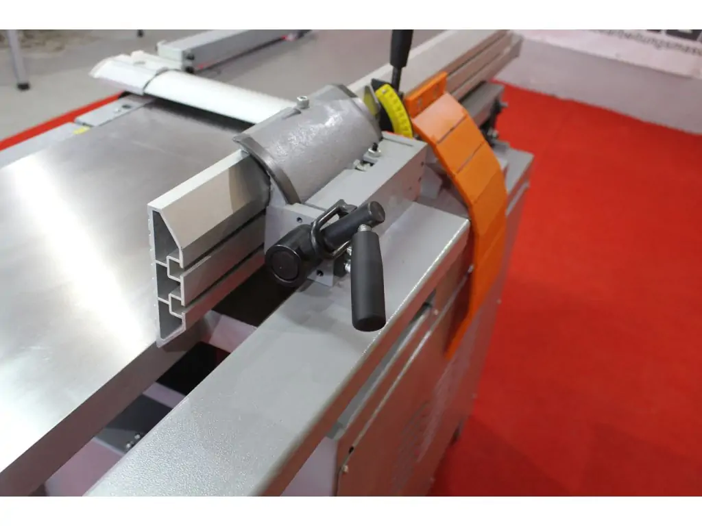 ПРОФЕССИОНАЛЬНАЯ ЛИНЕЙКА Установлена на станке. В отличие от стандартной линейки легко перемещается по мощной цилиндрической направляющей. Линейка не царапает стол за счет удобного и легкого перемещения на колесиках. Удобный наклон до 45° с выставлением по шкале позволяет снимать фаску под нужным углом. Гибкая защита закрывает ножевой вал за линейкой, что делает работу на станке еще более безопасной – норматив СЕ. |
