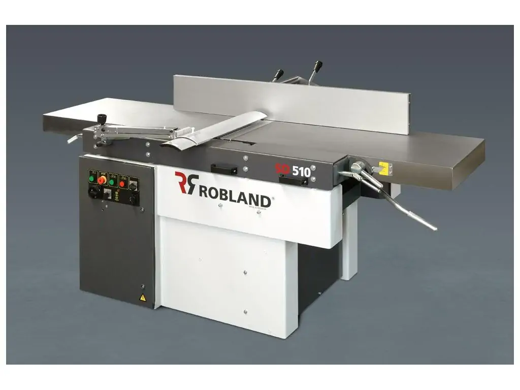Фуговально-рейсмусовый станок Robland SD 510 предназначен для строгания заготовок по толщине в размер, по пласте и кромке. Общая длина столов 2250 мм позволяет обработать даже длинные заготовки. В базовой комплектации станок оборудован мощностью 5 кВт. Станок комплектуется наклонной линейкой, защитным ограждением строгального вала, массивным чугунным столом. Опционально станок можно оснастить сверлильно-пазовальным устройством.