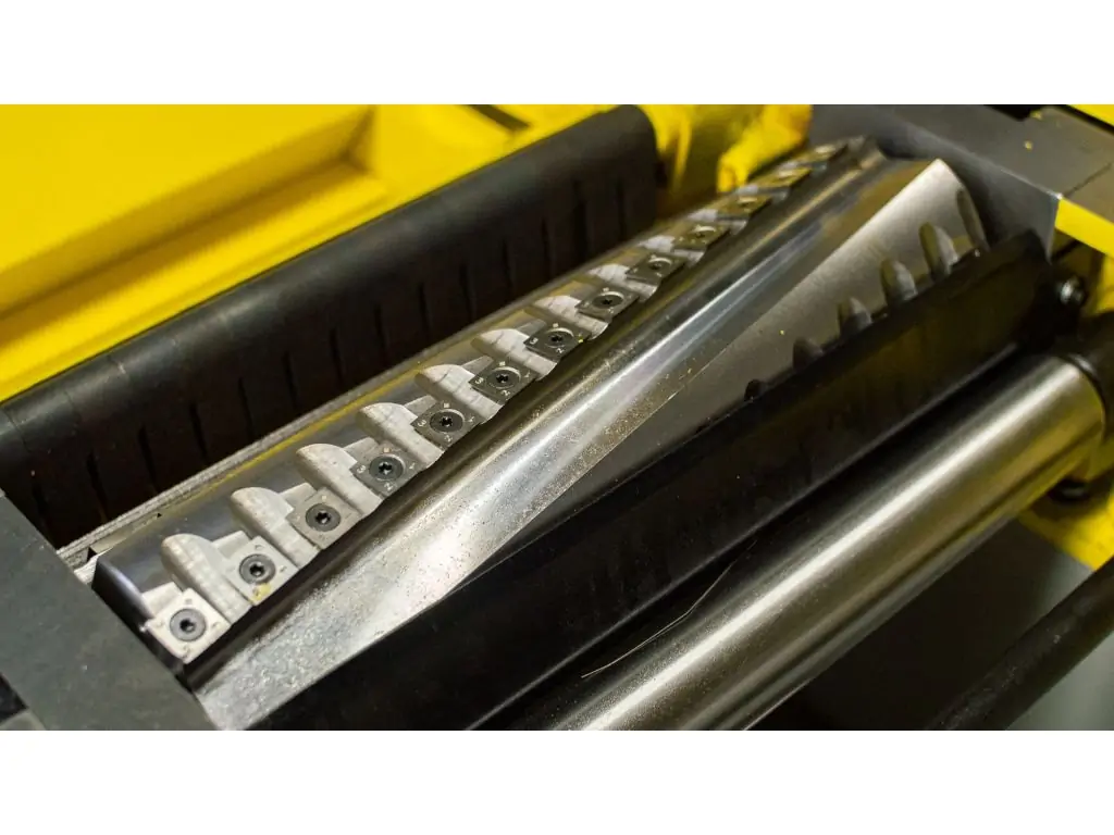 Спиральное расположение твердосплавных пластин со сменными пластинами создает так называемый протягивающий рез с отличным результатом строгания. Кроме того, это сводит к минимуму шум станка при использовании (до 50%).