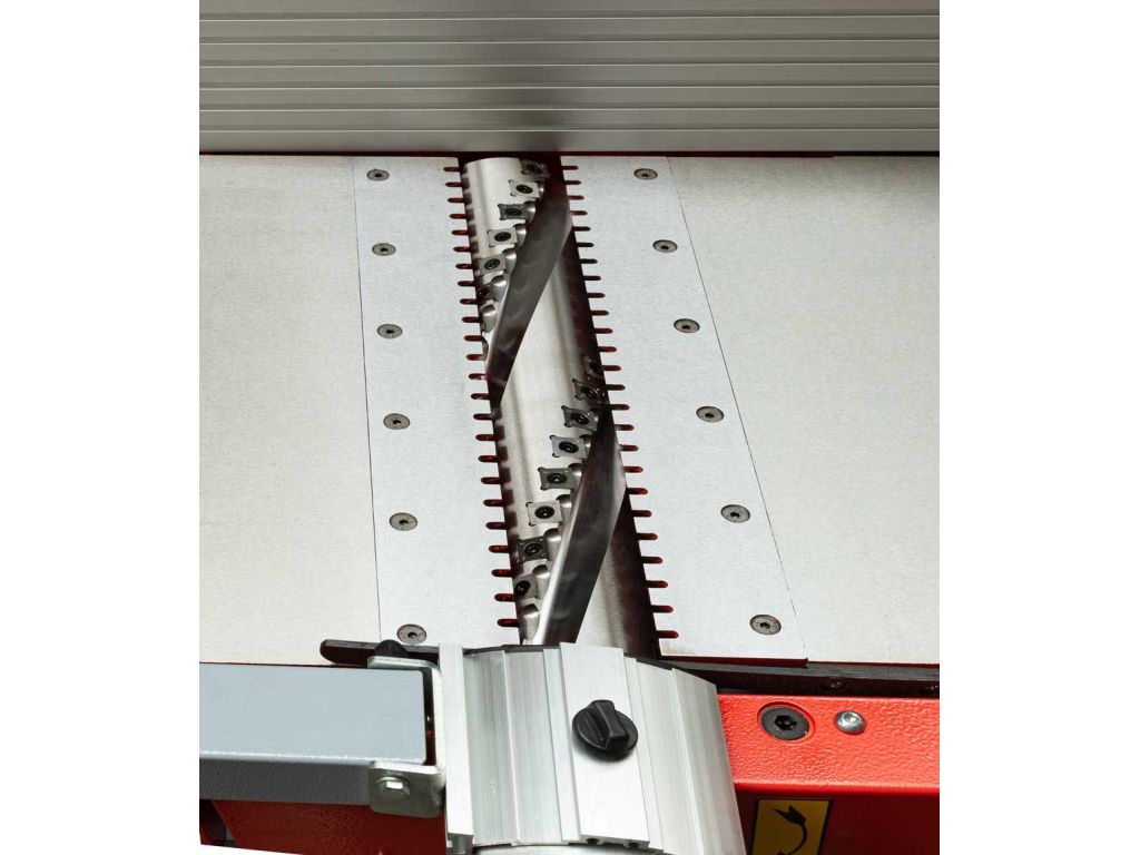 Спиральный вал оснащен многими мелкими сменными ножами (вставками), расположенными по спирали. Он снимает дерево постепенно, а не сплошной линией. Это уменьшает шум, вибрацию, нагрузку на двигатель и улучшает качество поверхности.