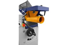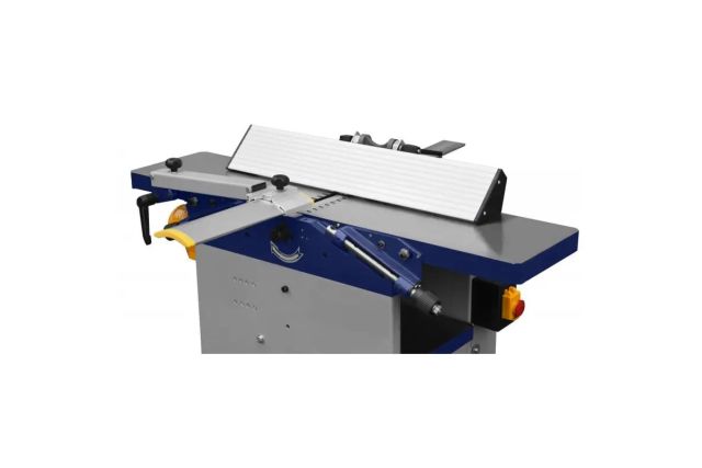 Ширина обработки составляет 254 мм. Глубина снятия за один проход – 2,5 мм фуганок и 3 мм рейсмус. Максимальная высота рейсмусования составляет 180 мм. Стальные ролики подачи расположены близко к ножам, что позволяет обрабатывать короткие заготовки. Для обработки под углом есть фуговальный упор с углом наклона 0-45°. Несмотря на компактный размер, этот фуговально-рейсмусовый станок 250 мм обладает промышленной мощностью, что делает его выгодным решением для профессиональных мастерских.