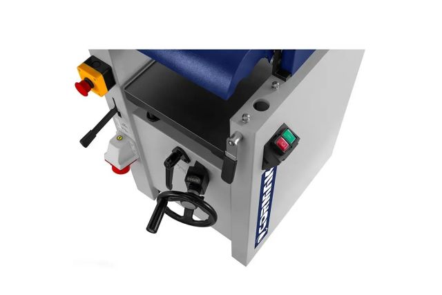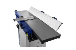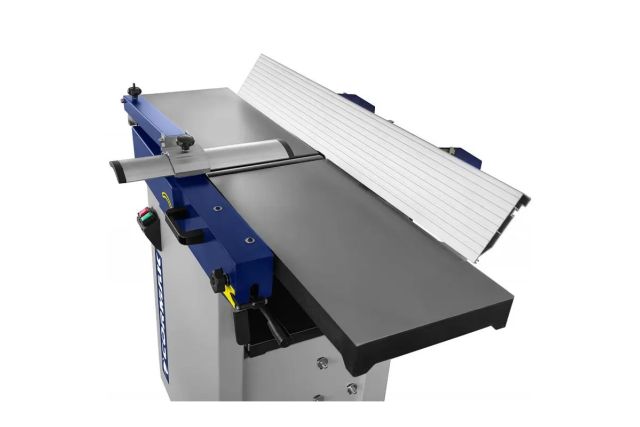 Высота рейсмусования составляет 180 мм. Максимальная глубина снятия за один проход – 4 мм на фуганке и 3 мм на рейсмусе. Чугунные столы со шлифованной поверхностью обеспечивают надежную поддержку и плавное скольжение заготовок. Фуговальный упор регулируется в диапазоне 90°-45°, что позволяет точно обрабатывать детали под разными углами. Благодаря жесткой чугунной конструкции весом 200 кг, этот фуганок рейсмус 300 мм сохраняет точность и стабильность при любых условиях.