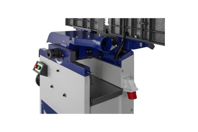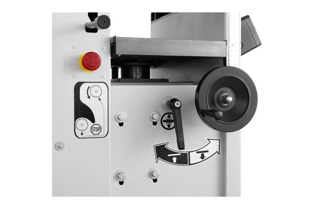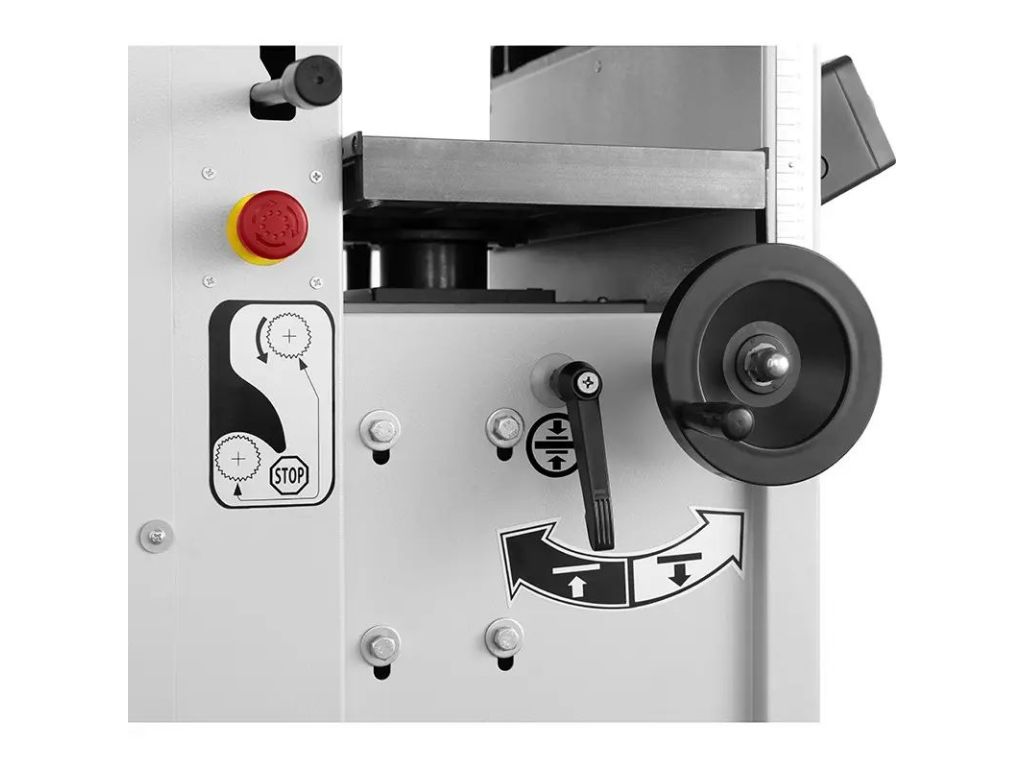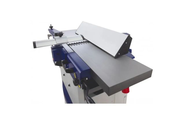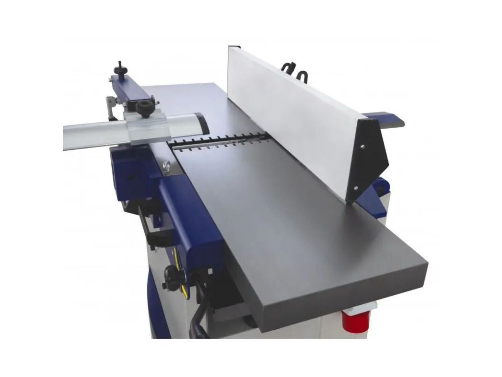 Особенностью модели является возможность соединения и одновременной регулировки столов, что экономит рабочее время и повышает точность обработки до 30%. Столы изготовлены из чугуна и имеют шлифованную поверхность для легкого скольжения заготовок. Для высокоточной угловой обработки используется маятниковый алюминиевый упор с углом наклона 90-45°. Этот рейсмусово фуговальный станок 250 мм сочетает компактность и промышленную мощность, поэтому будет идеальным выбором для профессиональных мастерских с ограниченной рабочей площадью.