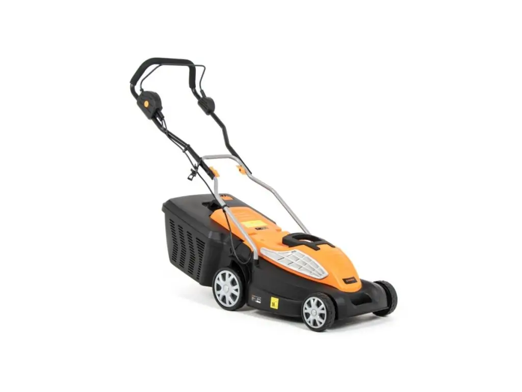 Корпус газонокосилки выполнен из ударопрочного пластика. Эргономичная ручка для управления с покрытием софт-тач в точке захвата не скользит в руках и позволяет удобно управлять техникой. Прочные колеса легко проезжают по траве, обеспечивая максимальный комфорт использования. Для предотвращения неисправностей есть защита от перегрева. Простая в эксплуатации, легкая и маневренная, эта электрическая газонокосилка не требует значительных физических усилий или специальных навыков.
