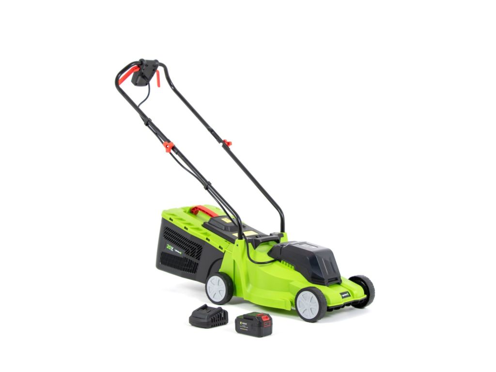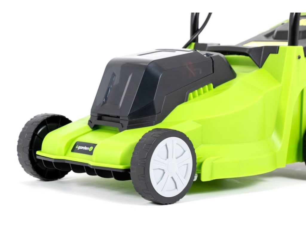 Профилированные ножи из прочной стали выполняют ровный и чистый срез, благодаря чему кошение осуществляется быстро и качественно. Скошенная трава собирается в пластиковом контейнере объемом 25 л. Колеса диаметром 12,5 см легко проезжают по неровным поверхностям, а эргономичная ручка позволяет с комфортом работать в течение длительного времени. Прочный корпус из высококачественного пластика устойчив к повреждениям и атмосферным воздействиям, поэтому такая аккумуляторная газонокосилка долговечная и надежная.