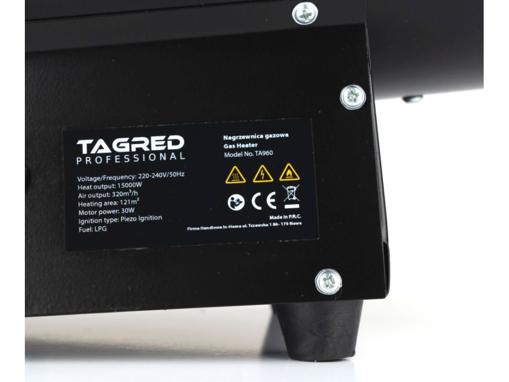 Газовый обогреватель TAGRED TA960 – портативный прибор, предназначенный для обогрева складских, производственных и подсобных помещений. Обогреватель работает на газе пропан-бутан. Устройство имеет многочисленные средства защиты, включая защиту от перегрева и утечки газа.